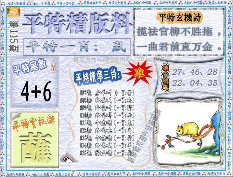 | 113期:☘平特一尾☘【111尾】开:蛇01准 |