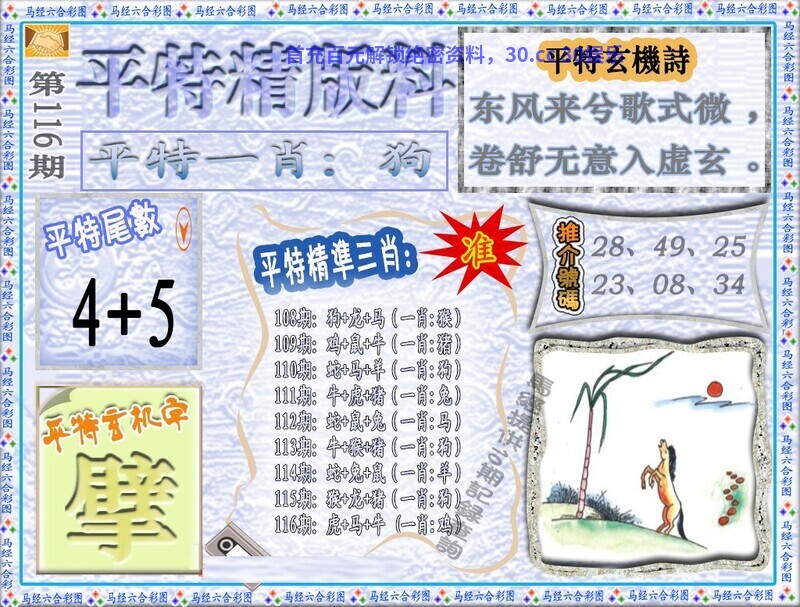 | 116期:九肖【马鼠兔牛狗虎猴羊猪】开马24准 |